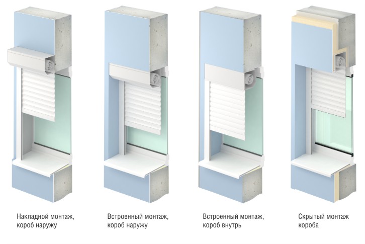 Устанавливаются роллетные системы несколькими способами, чаще других используют накладной или встроенный монтаж.
